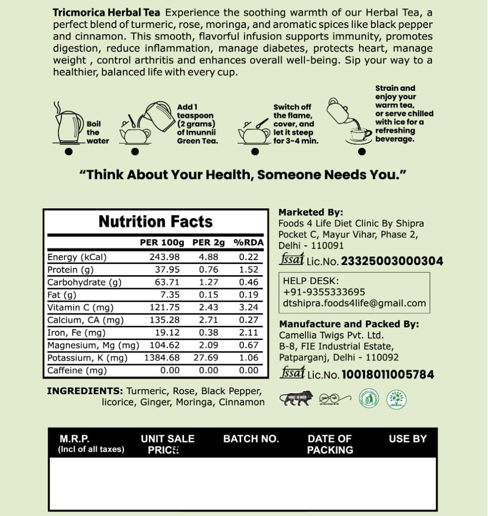 Trimorica Herbal Tea isn’t just another health drink. It’s a carefully curated blend of nature’s most potent herbs—crafted by leading dietitian Shipra Sehgal to help you build real immunity from within.